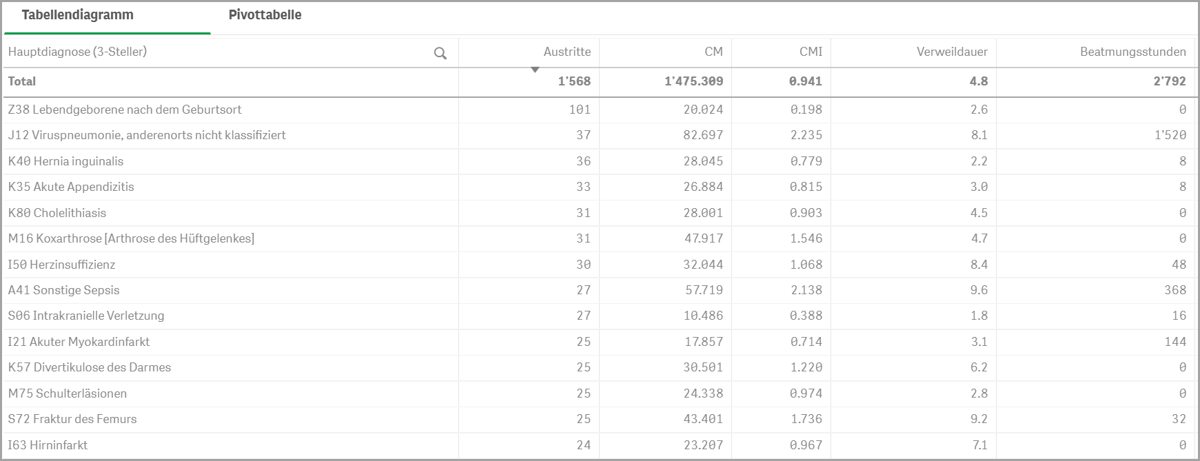 Ein Klick auf eine der Kennzahlen sortiert die Tabelle auf- oder absteigend nach dieser Spalte.