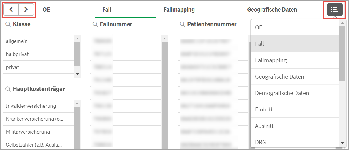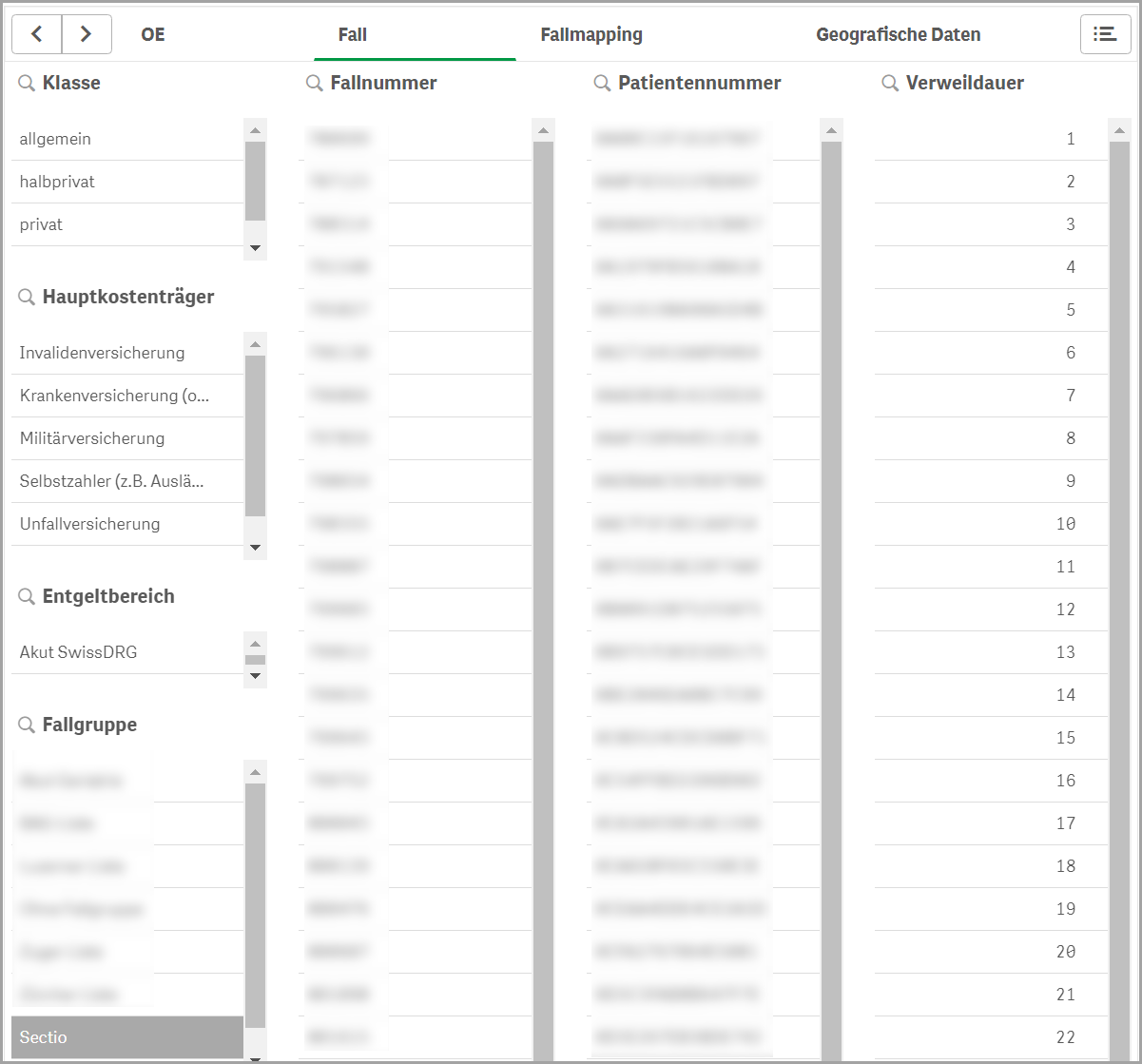 Eine Selektion nach Fallnummer, Patientennummer, Klasse sowie anderen Auswahlmöglichkeiten ist gegeben.