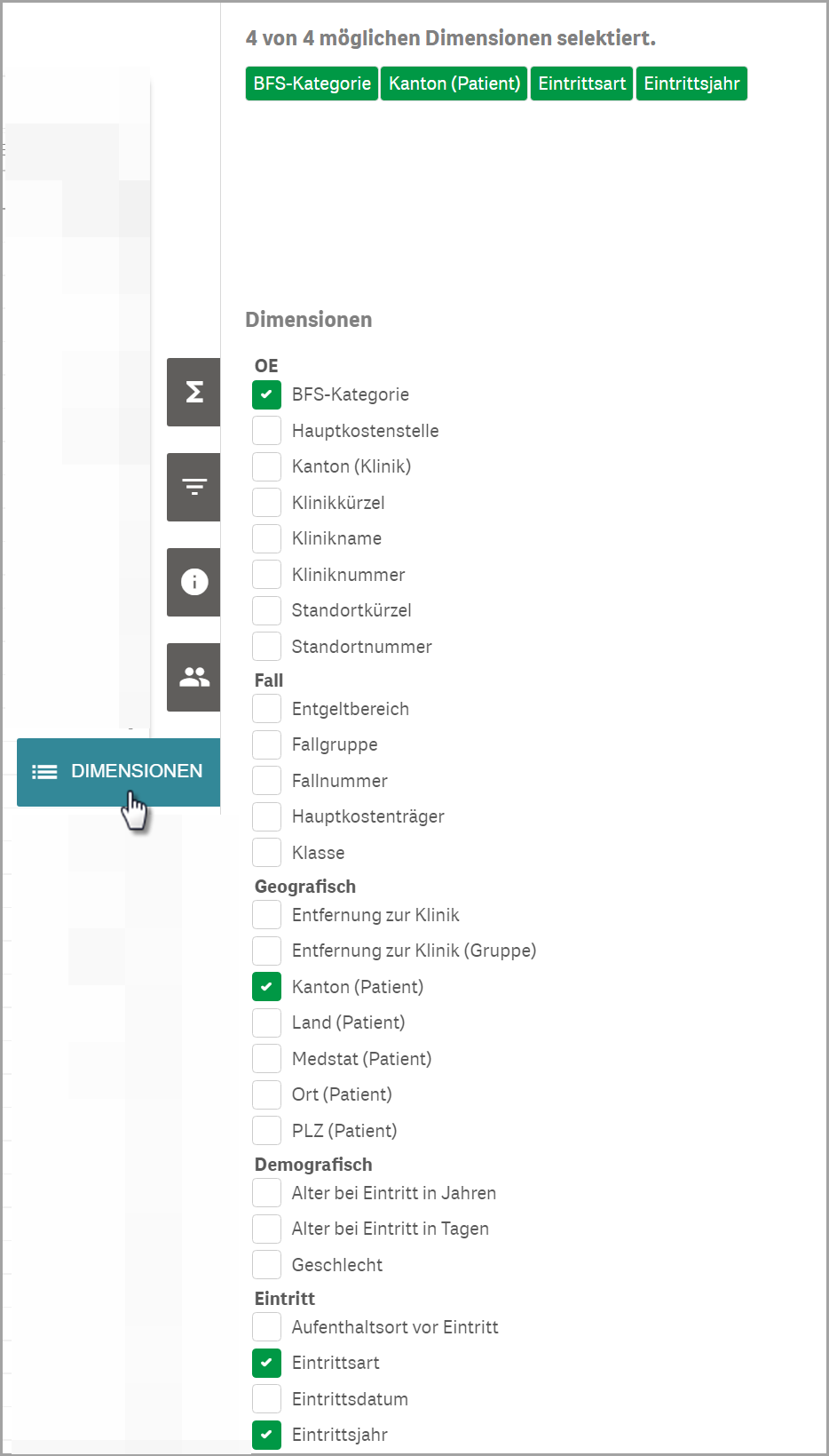 Die Dimensionen können per Mausklick angewählt oder abgewählt werden.