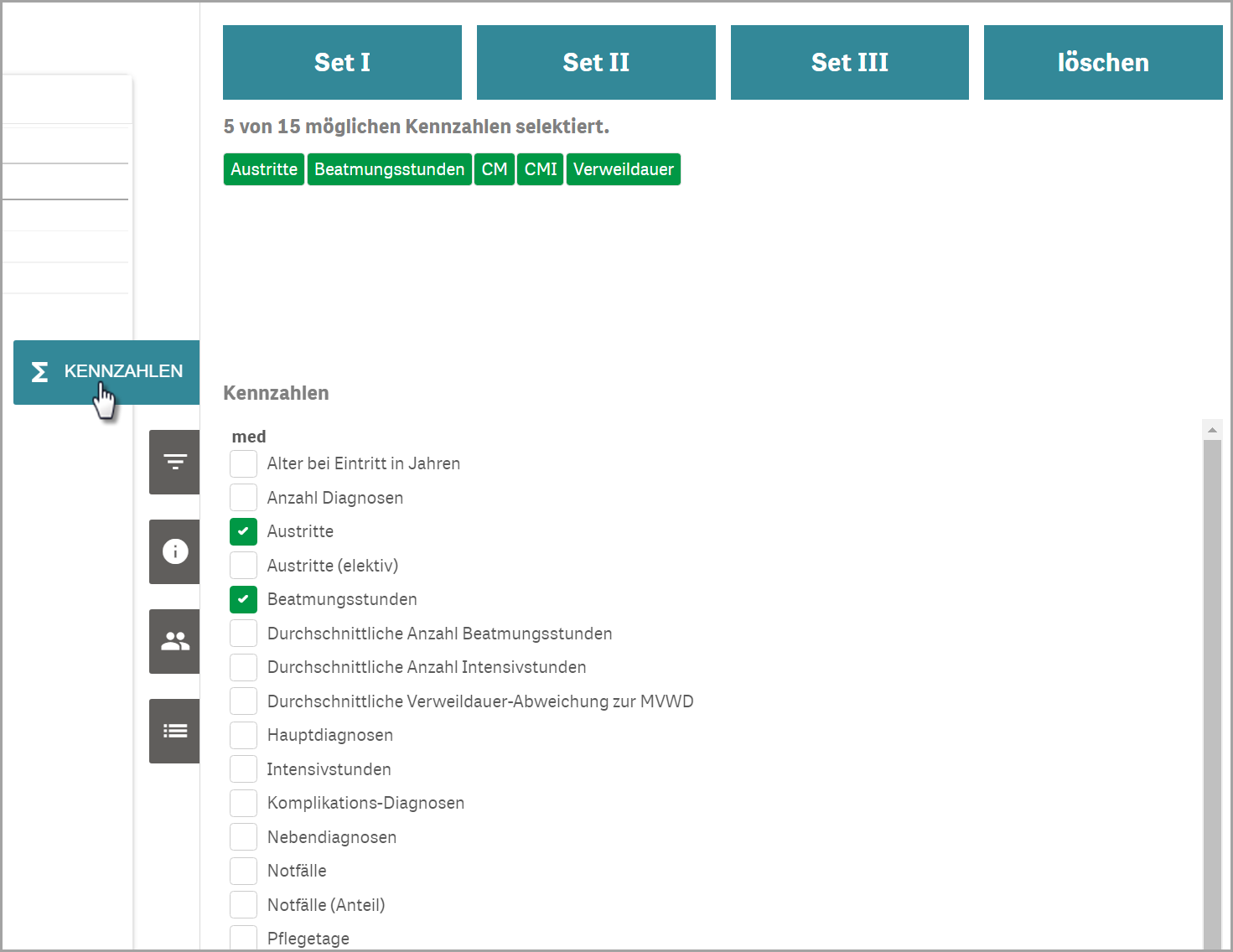 Die Kennzahlen werden per Mausklick eingeblendet oder auch ausgeblendet.