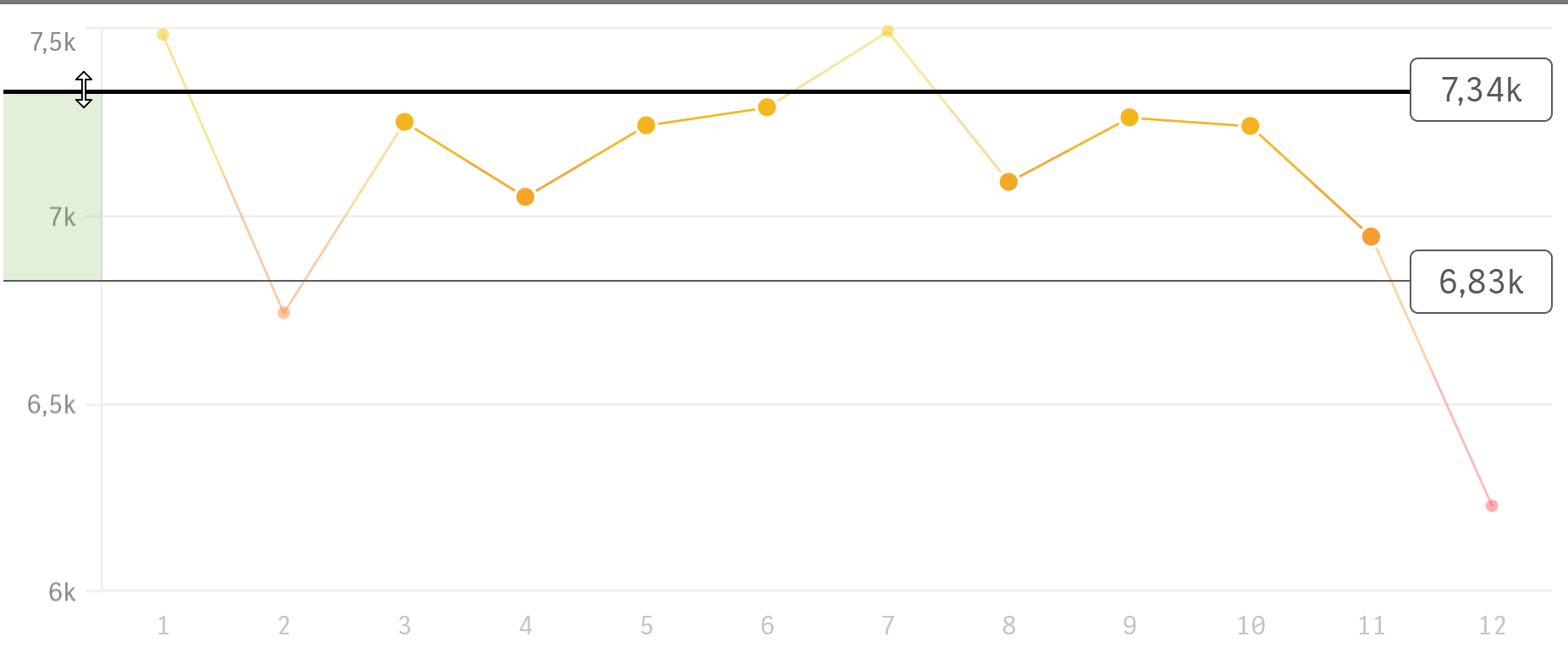 Mit Hilfe einer Freihandlinie können mehrere Werte ausgewählt werden. Zum Aktivieren der Markier-Auswahl kann entweder in die Visualisierung und dann auf das Lasso-Symbol geklickt werden oder die Auswahl mit gedrückter Umschalttaste vorgenommen werden.